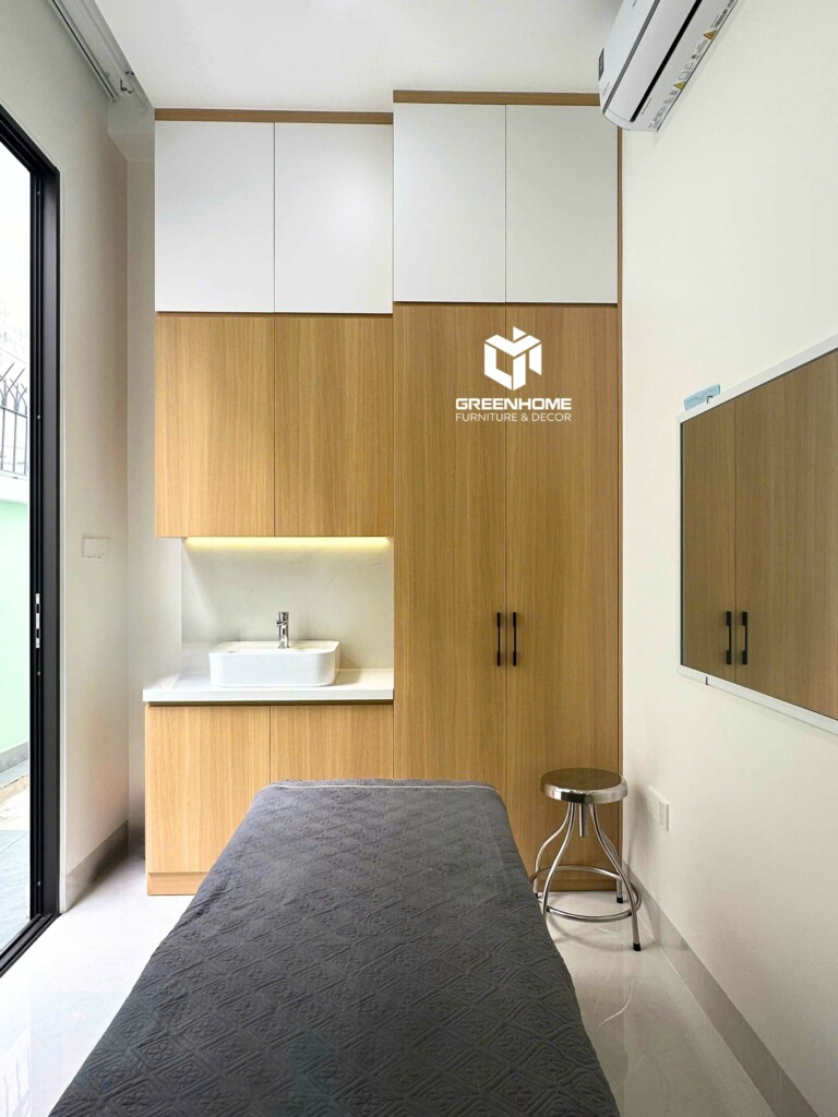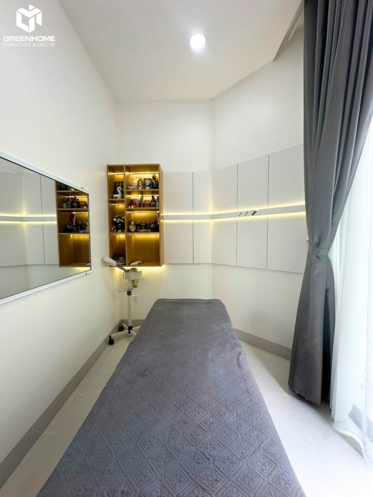 Không gian spa không chỉ mang đến cảm giác thư giãn mà còn giúp khách hàng khôi phục sự cân bằng trong cuộc sống bận rộn hiện nay. Bằng cách sử dụng màu sắc trung tính, một không gian ấm áp và thân thiện được hiện thực hóa.