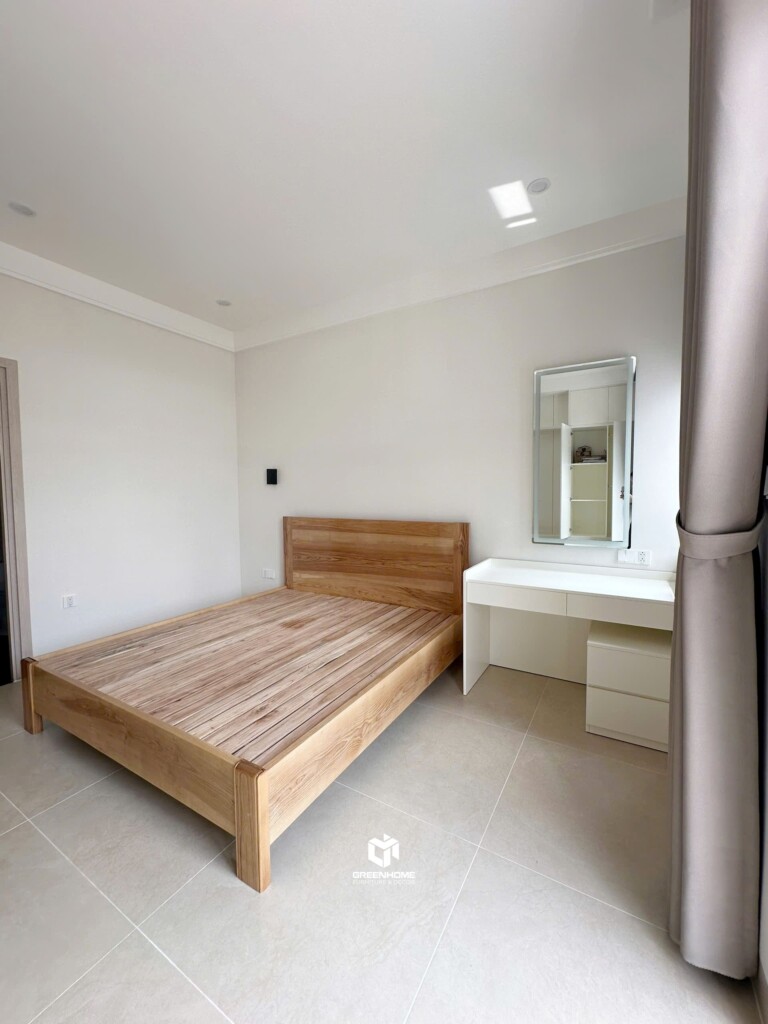 Nếu để ý kỹ, sẽ nhận thấy tone gỗ sáng màu có phần dịu dàng và nhẹ nhàng hơn so với phòng khách. Nhờ đó mà tạo cảm giác dễ chịu, khơi gợi sự thoải mái cho chủ nhân căn phòng.