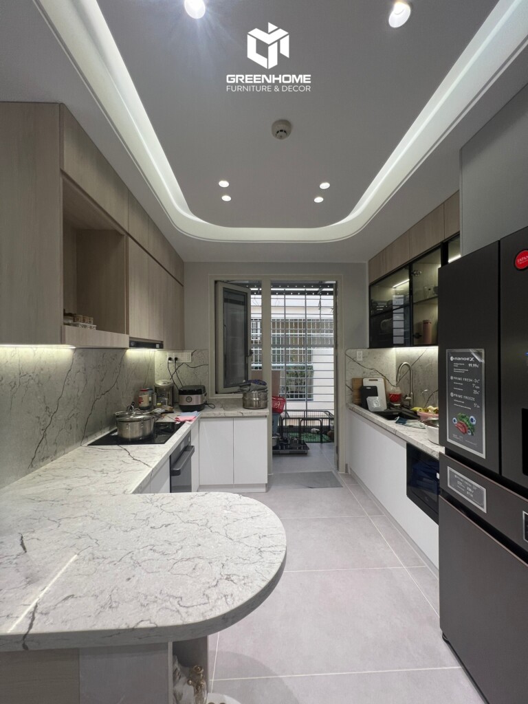 Cảm ơn gia đình chị Mi đã lựa chọn Nội thất GreenHome là nhà thầu cải tạo nội thất trọn gói cho căn hộ của mình. Chúng tôi rất vinh dự khi được góp phần tạo nên không gian sống lý tưởng cho gia đình chị. Đội ngũ GreenHome đã tận tâm thiết kế và thi công, mang lại sự kết hợp hài hòa giữa phong cách hiện đại và tiện nghi. Từ phòng khách, phòng ngủ đến bếp, mỗi góc nhỏ trong căn hộ đều được chăm chút kỹ lưỡng, đảm bảo tính thẩm mỹ và công năng. Hy vọng gia đình chị Mi sẽ hài lòng và có những trải nghiệm tuyệt vời trong ngôi nhà mới.