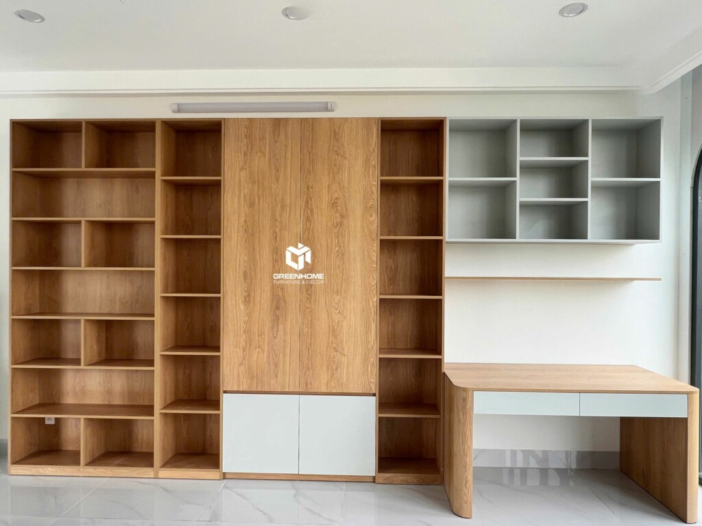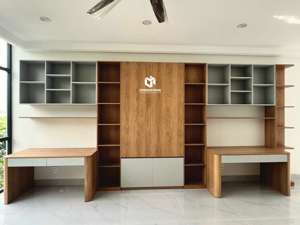 Đặc biệt, sự sắp xếp có chủ ý của GreenHome khi thiết kế các góc học tập đối diện nhau không chỉ giúp tạo sự cân bằng giữa các khu vực chức năng mà còn thúc đẩy tương tác và hỗ trợ lẫn nhau. Sự bố trí này mang đến sự kết nối liền mạch, giúp gia chủ dễ dàng chuyển đổi giữa làm việc và nghỉ ngơi một cách linh hoạt, đồng thời tận dụng ánh sáng tự nhiên và tạo cảm giác thoải mái cho không gian sống.