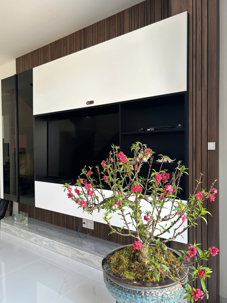 Hệ tủ trang trí thiết kế liền mạch, giảm chia nhỏ chi tiết