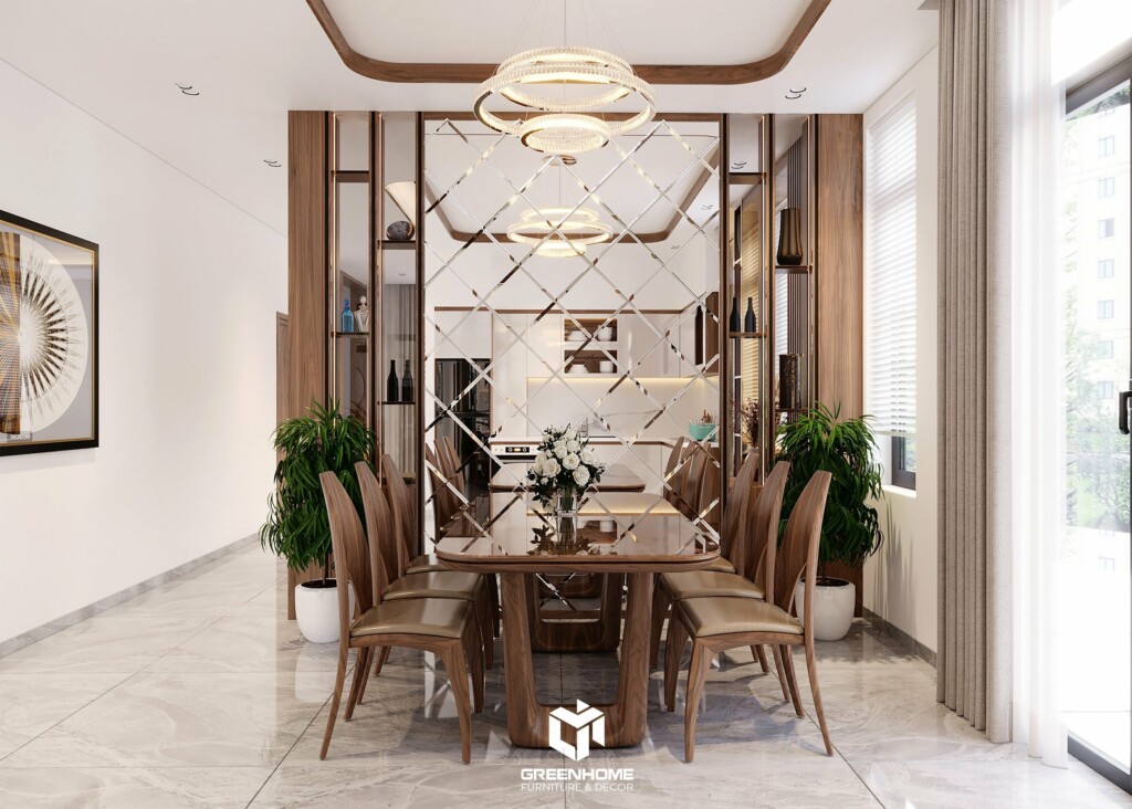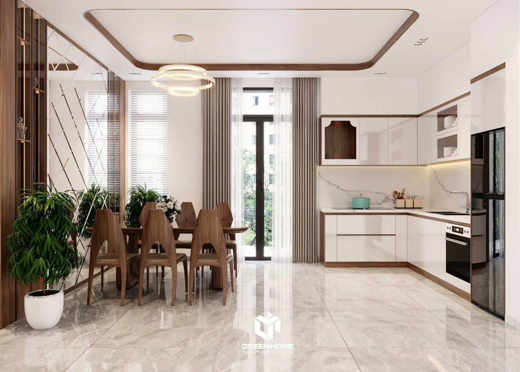 Nội thất gỗ óc chó hiện nay được ưa chuộng nhờ sự kết hợp hoàn hảo giữa vẻ đẹp tự nhiên và độ bền cao. Với màu nâu ấm áp, vân gỗ đẹp mắt và khả năng chống mối mọt, gỗ óc chó mang đến không gian sang trọng và tinh tế. Các sản phẩm nội thất từ gỗ óc chó như bàn ghế, tủ kệ, giường ngủ không chỉ bền bỉ theo thời gian mà còn giữ nguyên giá trị thẩm mỹ. Ngoài ra, gỗ óc chó còn thể hiện đẳng cấp và gu thẩm mỹ của gia chủ, phù hợp với nhiều phong cách thiết kế hiện đại. Cùng chiêm ngưỡng mẫu thiết kế nội thất nhà ở Bà Rịa Vũng Tàu ứng dụng nội thất gỗ óc chó của GreenHome nhé!